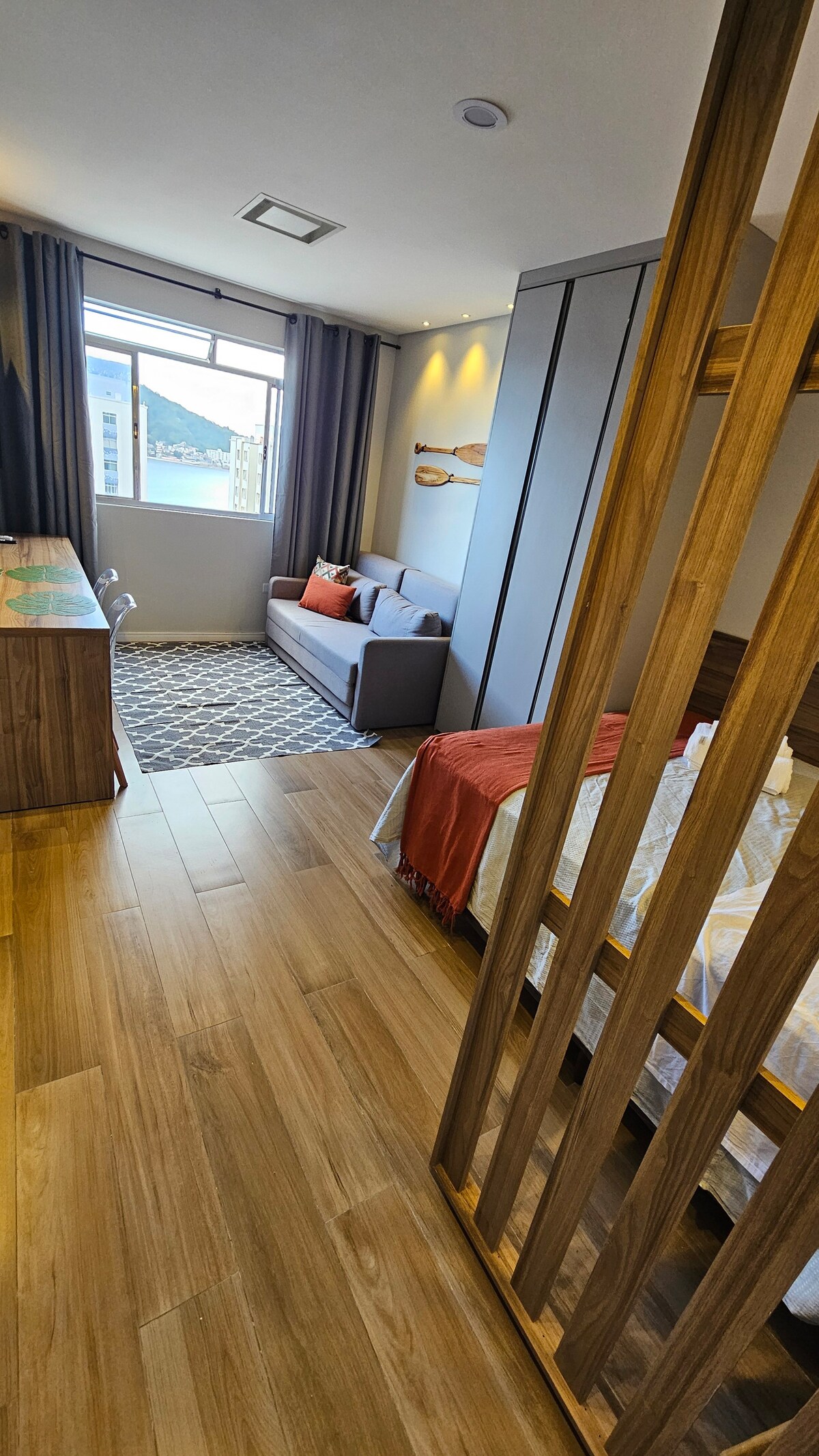 A poucos metros da praia, com vista mar e tudo ao seu alcance! 🏖️ Nosso apartamento tipo kitnet é totalmente modernizado, equipado com tudo o que você precisa (inclusive Alexa), unindo conforto e praticidade. Localização excelente. Em avenida paralela à orla, perto de mercados, diversos restaurantes, bares e padarias. Estacionamento coletivo, disponível na maioria das hospedagens. Ideal para lazer, trabalho ou estudos. Traga sua mala e boa energia, o resto já deixamos pronto para você!