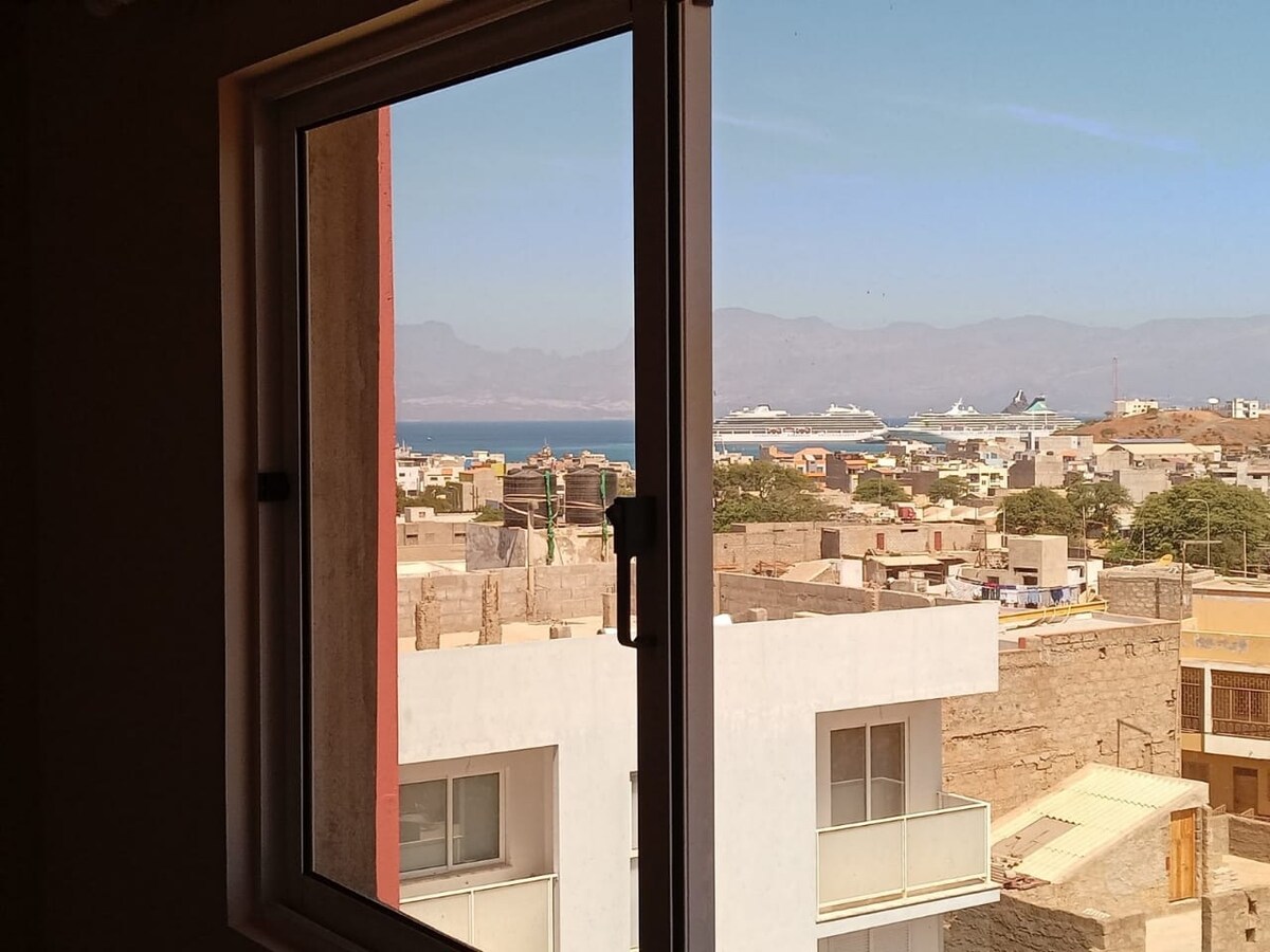 Mindeloda ən yaxşı mənzərəni seyr edin! Şəxsi verandanızdan Mindelonun sahil xətti, ikonik Monte Kara (Vaşinqton dağı) və sevimli Laqinha Çimərliyinin köklü mənzərələrindən zövq alın. Ayrıca 1 otaqlı, 1 otaqlı mənziliniz çimərlik festivallarına, restoranlara, mağazalara və canlı mədəni mühitə piyada məsafədə yerləşir. Səhərlərinizi okean-mavi rahatlığı ilə başlayın və günlərinizi unudulmaz gün batımı ilə başa vurun. Şəhərdə həqiqətən daha yaxşı mənzərə yoxdur.