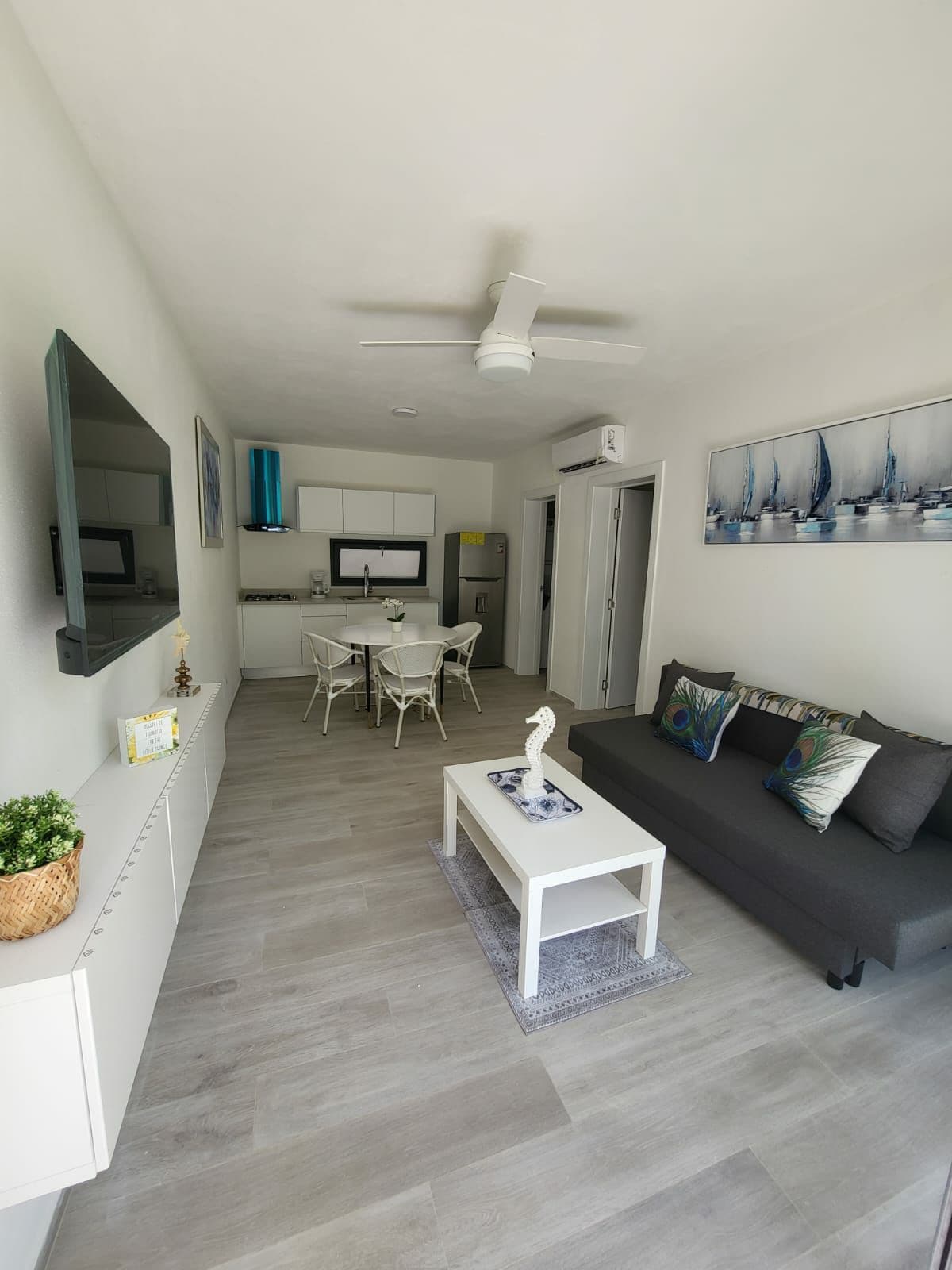 Relax in this centrally located quiet space. In an exclusive residence, a charming 76 m2 apartment equipped with every comfort for an unforgettable holiday in total tranquillity. The apartment consists of a bathroom with shower and bidet, laundry area, bedroom with walk-in closet and balcony, a large living area with kitchen and living room, equipped with a double sofa bed, which overlooks a wonderful terrace overlooking the ocean pool.