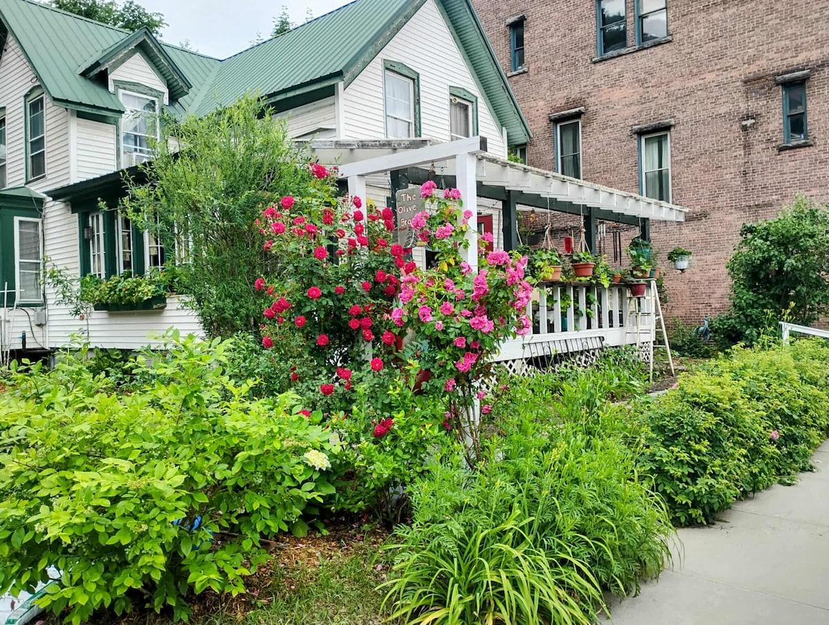 We are located 100 yards from the downtown area, and 300 yards from Lake Flower, but in a nice residential spot. We grow our own food in our front yard and on our large porch. House is over 100 years old, comfortably furnished. Style is "Early American Garage Sale." Very close to canoe and kayak rentals, and minutes away from 3 boat launches and boat rentals. 1 block from new Adirondack RAIL TRAIL. Your hosts were involved in eco-tourism for many years and can provide a wealth of information.