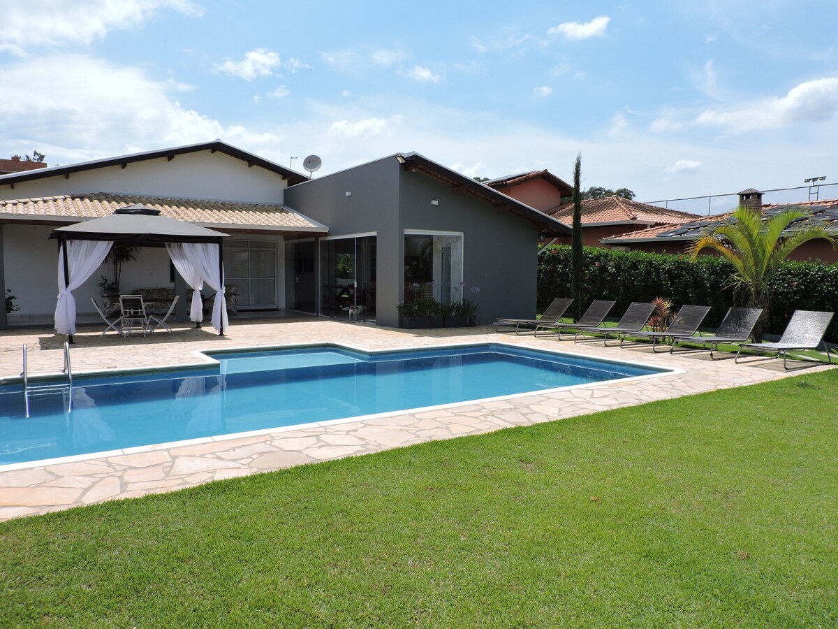 Sanny Chácara qapalı kondominium və nəzarətli girişi olan qapalı kondominiumda. 4 YATAQ OTAĞI VƏ 4 yataq otağı olan 5 yataq otağı İLƏ burada çoxlu rahatlığı olan 3 və 1 cütdən ibarət 4 ailə yerləşir. Davamlıdır, günəş enerjisi istehsal edir. Barbekü, pizza sobası və taxta soba ilə geniş qurmanları var. Bütün ailəni əyləncəyə aparın. Mətbəx bütün qab-qacaq və qabyuyan maşınla tamamlanıb. Smart Tv 70 "