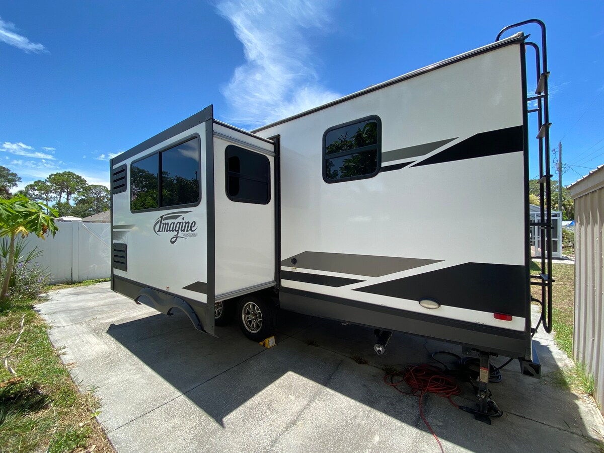 Stay in our 2023 RV located 8.9 miles from Siesta Key. Nice and comfortable place to stay. The RV sits next to our home, gated property. We live in a safe neighborhood. Clean and accessible to everything. We are close to I 75, beaches, parks, UTC mall, restaurants, stores, etc. Just 8.9 miles from Siesta key, 16 miles from Lido Beach, 12 miles from Myakka state park, and 8.4 miles from UTC mall