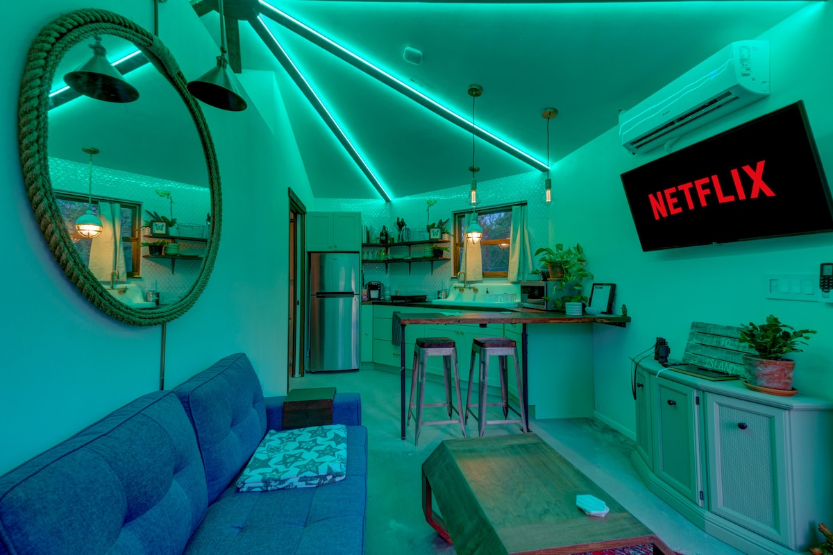 ⭑Octagonal 320ft² tiny home sitting on a private 1.5-acre island!⭑ ✯ Lake access ✯ Walk to dining, nightlife, and shopping ✯ Fully equipped + stocked kitchen ✯ Free bikes + kayaks +beach gear ✯ Backyard fire pit + BBQ ✯ Screened-in outdoor lounge w/ hammocks ✯ Smart TV w/ Netflix ✯ Memory foam bed ✯ 426Mbps wifi Ask which fruit trees are in season for a homegrown treat! 3 min → Siesta Key Beach 7 min → Downtown SRQ 12 min → Myakka River State Park (river kayaking + wildlife viewing)