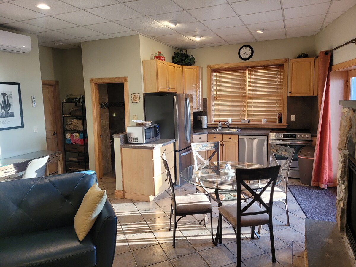 Araba evimiz post və tir anbarından gözəl və rahat studiya mənzilinə qədər tamamilə bərpa edilib. İki çarpayı və rahat ikinəfərlik çarpayı var; hər yerdə taxta döşəmələr; mətbəxdə qranit sayğaclar, yeni avadanlıqlar və qaldırılmış yemək barı var; ayrıca yemək masası və iş masası; hamam otağı şüşə örtüklü duş ilə tam döşənib. Mərkəzi HVAC.Two off-street park yerləri şərikli hasarlanmış həyət və təhlükəsizlik üçün ayrıca kodlaşdırılmış giriş ilə birlikdə sizindir.
