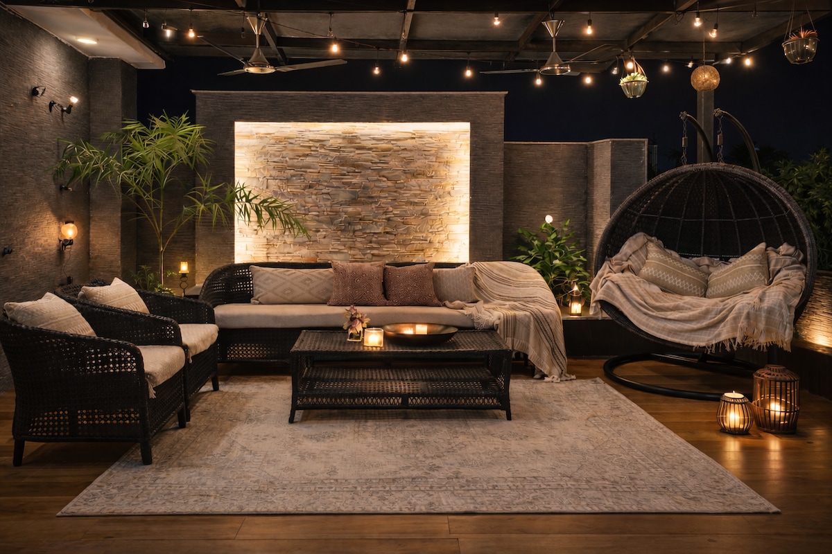Geniş yataq otağı, havalı qonaqlama və yemək sahəsi və ayrıca arxa həyəti olan cütlük yönümlü 1BHK - dincəlmək və ya uzaqdan işləmək üçün mükəmməldir. Tam təchiz olunmuş mətbəxdən, təmiz hamam otağından, Wi-Fi və Ağıllı TV-dən zövq alın. Mərkəzi Gurgaonda, Kiber Şəhərə, ticarət mərkəzlərinə və metroya yaxın ərazidə yerləşir. Qonaqlar romantik tətil və ya stressiz şəhər qonaqlaması üçün rahat ab-havanı, dəbli interyerləri və ev rahatlığını sevir. Uzunmüddətli qonaqlamalar üçün də mükəmməldir. Qonaqlara icazə verilmir. Yalnız maksimum 2 qonaq!