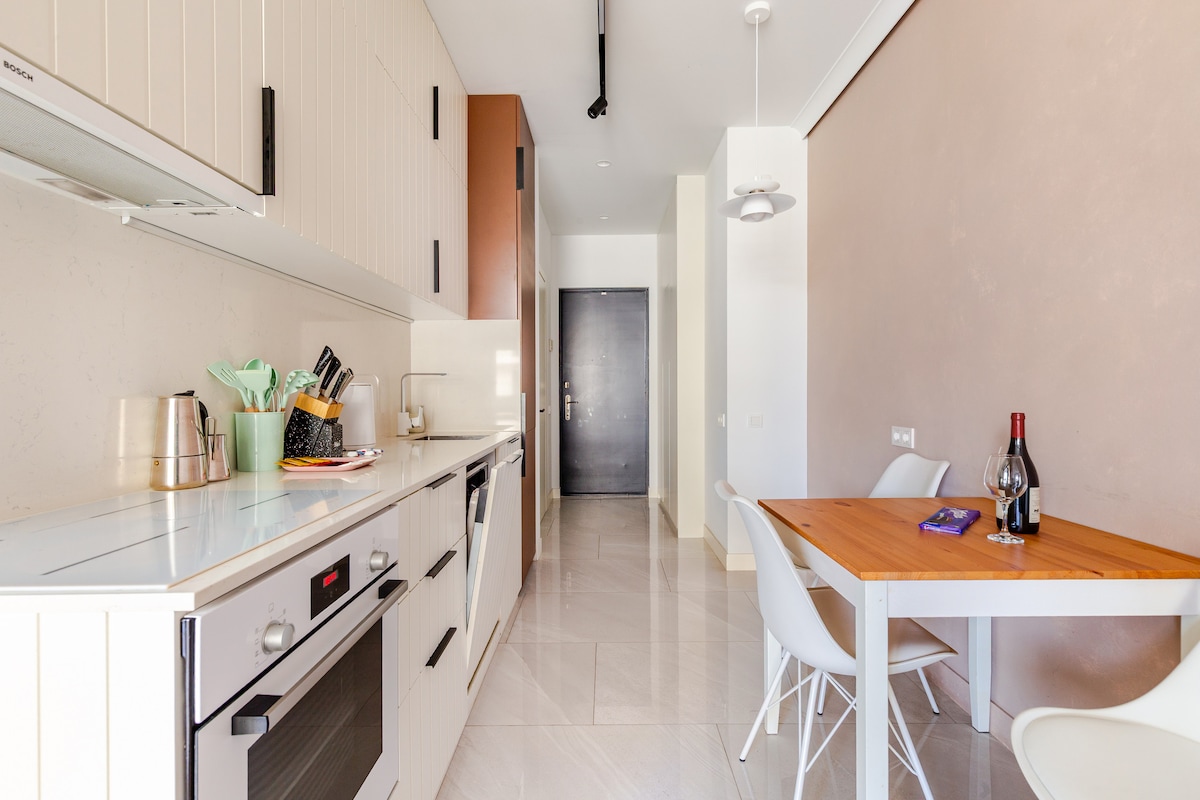 You're going to like this new flat! The feeling of comfort and freshness is provided by marine style interior and plenty of daylight. An 8th floor means beautiful view of the city, boulevard and sea. You'll have all the tourist places, shops and restaurants very close. It's quiet and nice here - perfect place to relax in!