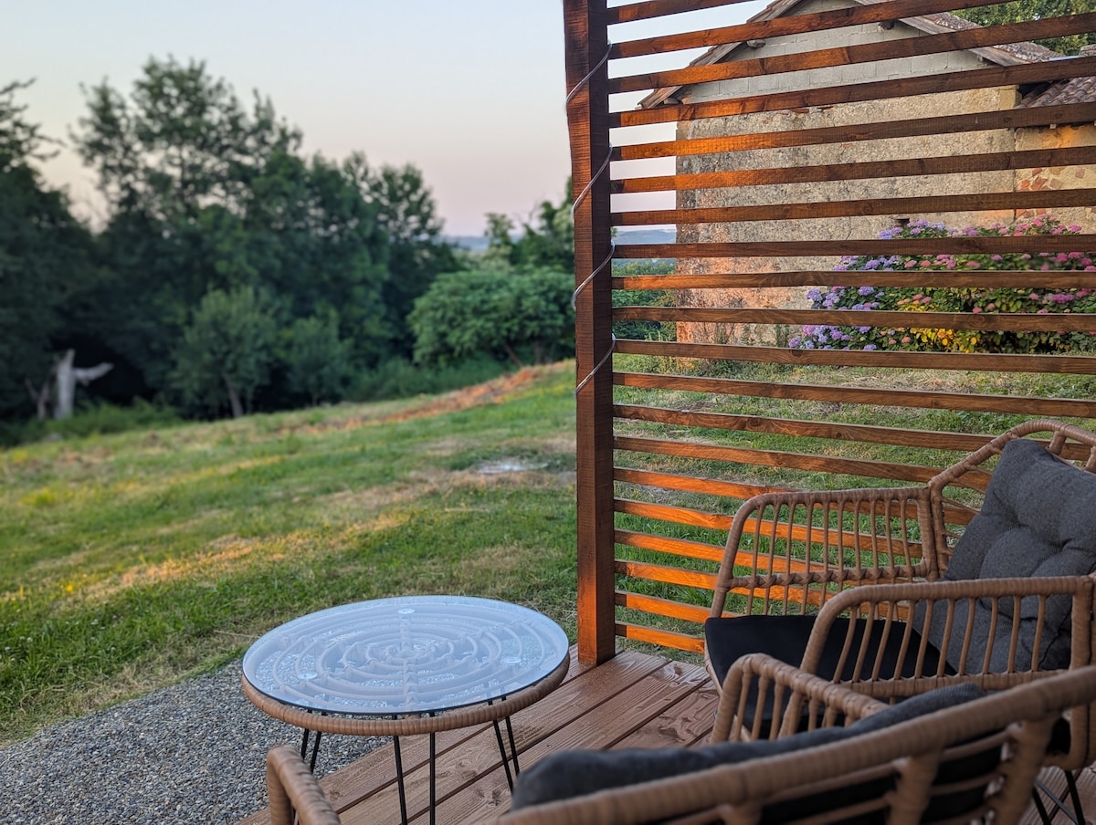 🐸 La Maison des Grenouilles – Qers vadilərinin mərkəzində kəndsayağı kottec. Gəlin və Kiçik Fransız Toskanasının mərkəzində, şəhərin səs-küyündən uzaqda kiçik təbiət guşəmizi kəşf edin. Ölkə üslubunda təmir edilmiş, 2-4 nəfər üçün ideal olan füsunkar 70 m² kottec. Hündür tavan, açıq şüalar, odun sobası, gölməçə və qurbağa mənzərəli ayrıca terras. Yayda sərin, qışda isti. Hovuz, bağ və paylaşılan oyunlara giriş.