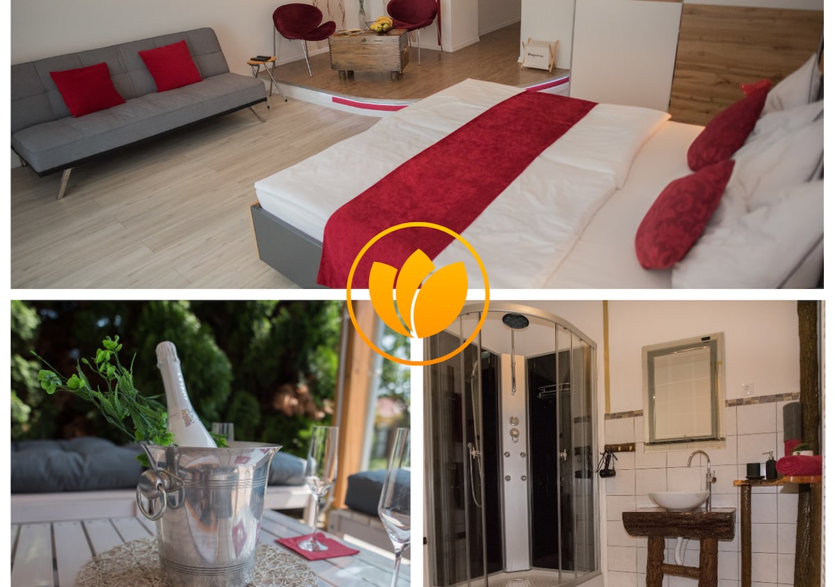 Welcome to EHM. Look forward to a relaxing stay in Hungary – our stylish apartment offers: • Garden with seating area & barbecue • Fenced private parking • Austrian host • Smart TV with access to Netflix & YouTube • Kitchen with ceramic cooktop, microwave, mini oven, coffee machine & electric kettle • Dogs are very welcome One guest put it perfectly: “Excellent accommodation, beautiful surroundings, friendly hosts.”