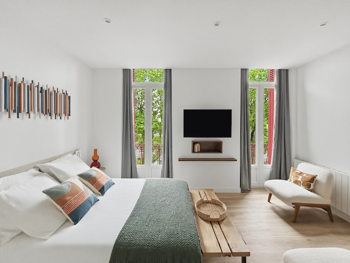 Place des Landaisdəki müasir 56m² mənzilimizdə dənizkənarı dəbdəbəni kəşf edin. Canlı ərazidə yerləşən bu dəbli yaşayış yeri okean mənzərəli terras ilə birbaşa çimərliyə giriş təklif edir. İki sulu yataq otağında rahat yatın və tam vanna otağında təravətləndirin. Landes sahilinin mərkəzində yerli kafelər, butiklər, restoranlar, barlar və sonsuz okeandan zövq alın. Mükəmməl bayramınız sizi gözləyir!