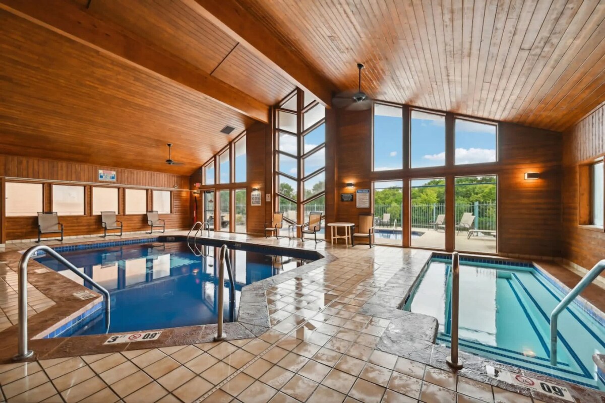 Şəhər Mərkəzi Viskonsin Dellsin sakit bir yerində çay sahilində bir yataq otaqlı kondominium. Gözəl Çay Gəzintisi yaxınlığında gəzintiyə çıxın və Viskonsin Dells şəhərinin möhtəşəm mənzərəsindən və unikal görməli yerlərindən zövq alın. Dincəlmək və dincəlmək üçün bir neçə günə ehtiyacınız olmasından və ya biznes və ya oyunlar üçün şəhərdə olmağınızdan asılı olmayaraq, kondominiumumuz tam təchiz olunmuş mətbəx, çarpayı ölçüsündə çarpayı və kraliça ölçüsündə divan təklif edir. Qapalı icma hovuzu, cakuzi və saunası var. Mövsümi açıq hovuz da var.