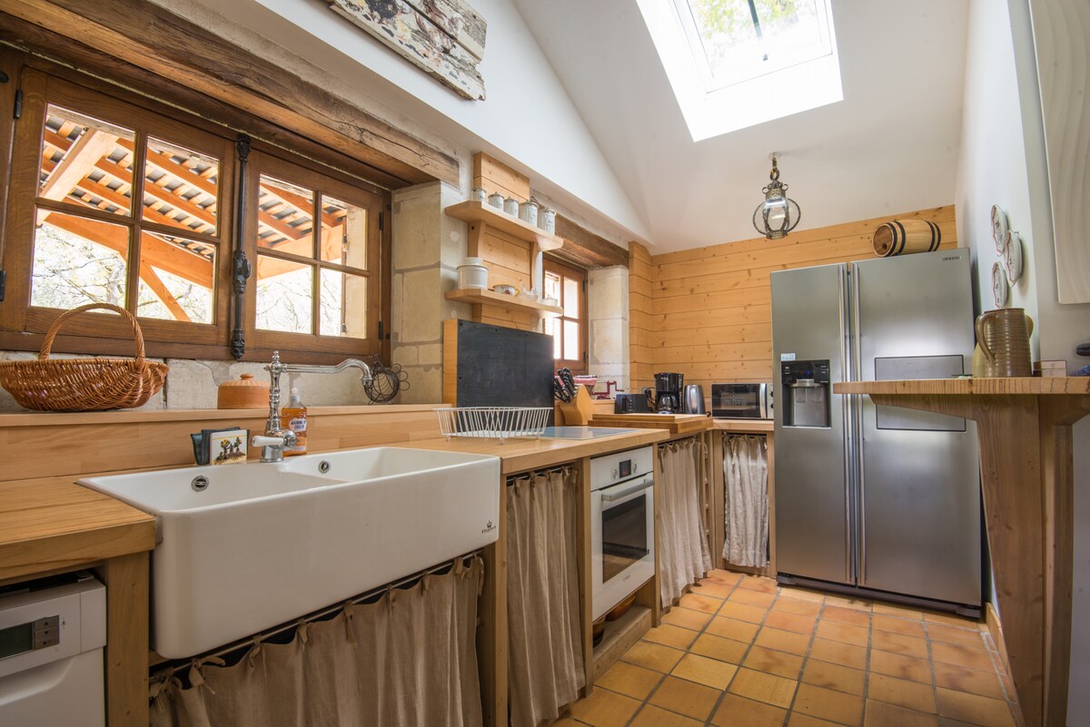 XVI əsr yarımroglodyte malikanəsi (280 m2) kənddə, böyük bir bağın (7000 m2) ilə əhatə olunmuş hamletin sonunda itib. Piştaxta sistemi ilə çöldə qızdırılan hovuz. Buxarı və kölgəli terrası olan yemək otağı, troglodyte mətbəxi, buxarı və videoproyektorlu salon, 4 otaq (30-35 m2) və 2 vanna otağı. Günortadan sonra müxtəlif atmosferlər üçün bir çox açıq hava masaları, gözəl və sakit cah-cəlal.