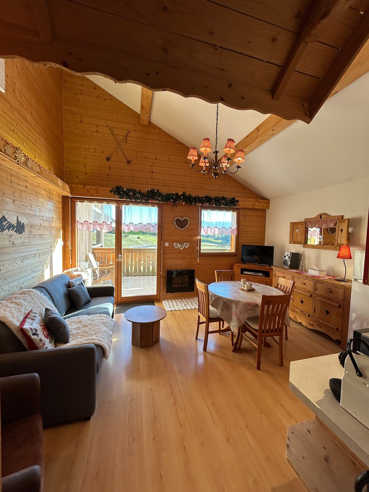 Xizək mərkəzlərinə və gözəl regionumuzun təklif etdiyi bir çox fəaliyyətlərə (göl, yürüyüş, xizəksürmə...) yaxındır: Sakit, xoş bir yerdə, isti, tipik atmosferi olan bu mənzil sizə giriş zalı, tam təchiz olunmuş mətbəxi olan qonaq otağı, iki gözəl yataq otağı, sanitar ləvazimatları olan duş otağı təklif edir. İnternetə limitsiz giriş, düz ekranlı televizorlar, gənc və yaşlı insanlar üçün pulsuz Netflix, çətir çarpayı, yataq dəsti + dəsmallar və ev döşəkağıları təmin edilir.