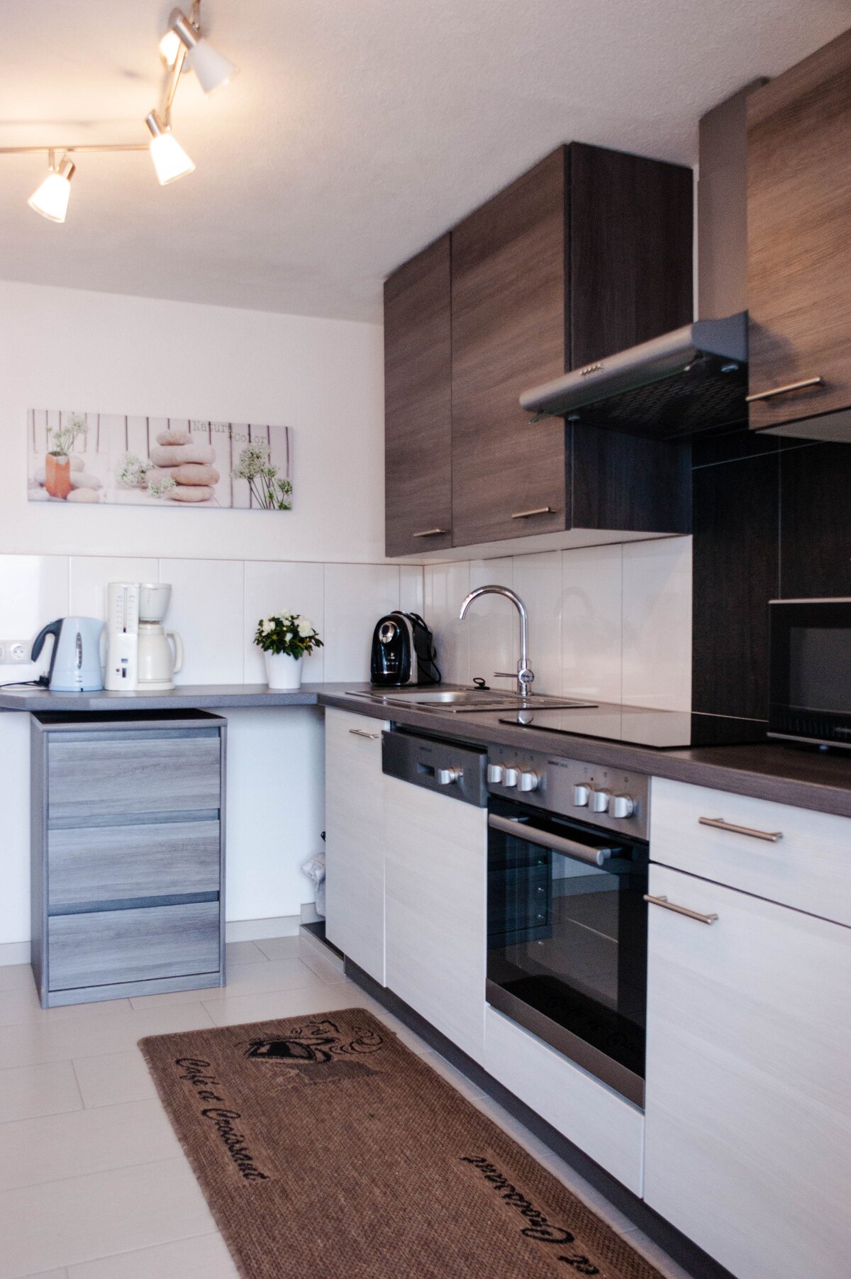 Gemütliche, moderne und vollausgestattete kleine Ferienwohnung. Das Apartment mit ca. 38 m² befindet sich im Parterre mit einem eigenen Eingang und besteht aus: einem Schlafzimmer mit Boxspringbett und TV; einem gemütlichen Wohnzimmer mit Schlafcouch (3.+4. P.) - Essbereich und großem TV; einer vollausgestatteten Küche mit Geschirrspüler, Backofen, Mikrowelle, Kaffeemaschine uvm.; einem Badezimmer mit DU/WC; einer ca. 45 m² großen Terrasse und 120m² großen Wiese zur alleinigen Nutzung.