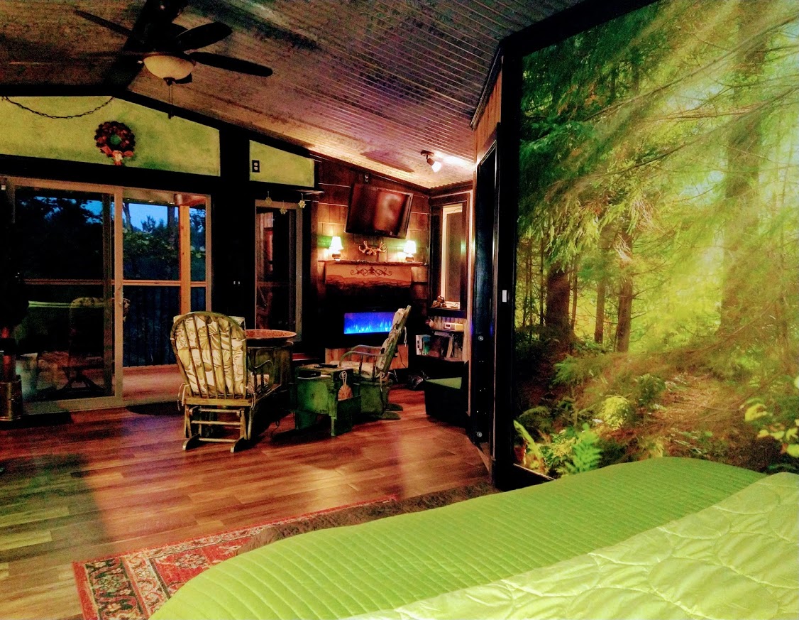 Bu, bir çox yerli imkanlara yaxın girişi olan sakit şəraitdə iki yataq otaqlı, iki hamamlı evdir. Bir yataq otağında kral, bir kraliça var və qonaq otağında kraliça və əkiz şpal divanı var. Tam yenidən qurulmuş mətbəx. Qril və od çuxuru olan meşəyə baxan böyük təndir. Gəzinti, velosiped sürmək və qar motosikleti sürmək üçün Bearskin cığırında yerləşir. Bir çox göl və görməli yerlərə yaxındır. Magistral yoldan asan giriş, lakin sakit ölü son yolda. Pulsuz Wİ-Fİ/Smart TV. Xatirələr yaratmağa hazırdır!