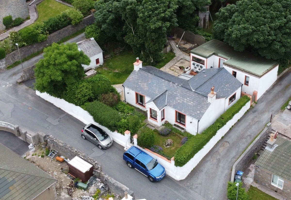 Beautiful historic cottage, restored to modern standards in the leafy backstreets of picturesque Scalloway. Private mature wooded garden, shared only with other guests. Short walk to the waterfront and visitor amenities or open moorland with stunning views just a stride away. A central starting point for your Shetland experience with nearby transport links and a convenient location in the island's ancient capital of Scalloway. Stunning views to the harbour, Scalloway Castle and nearby islands.
