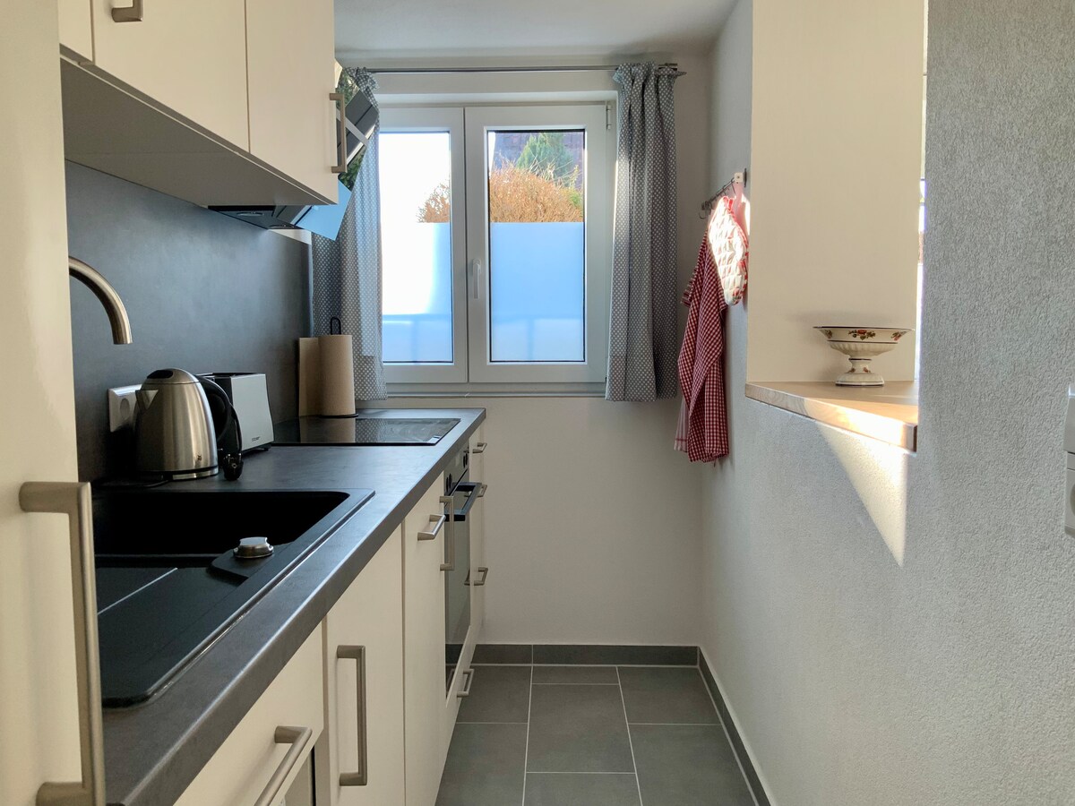 Hoçdorfda çox sakit mövqeyə malik 1 otaqlı mənzilə ayrıca giriş vasitəsilə giriş mümkündür. İki nəfərlik çarpayı (140), qəhvə maşını ilə yaxşı təchiz olunmuş mətbəx, Nespresso maşını, çaydan, soyuducu, iki hotplates, toster və mini soba var. Hamam otağında duş, çanaq və tualet var. Mənzilin kənd yerində kiçik terrası var.