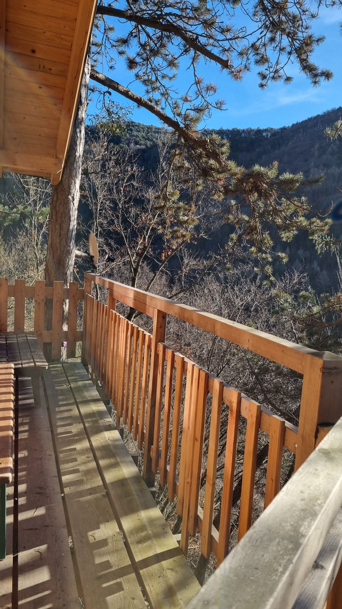 Meşədə balkonlu ağac ev