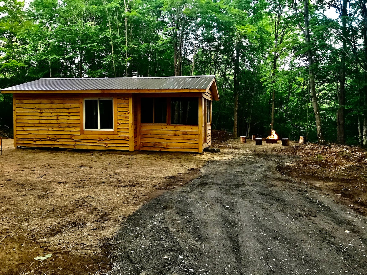 Beautiful new cabin at the end of our country road with fabulous mountain views! Optional hot tub experience in our all natural cedar hot tub located nearby in Japanese temple. We also offer a optional Sauna Experience! Wood fired pizza offered at the main compound (most but not all nights). Gorgeous lake just three miles down the road. Five miles from Gore Mountain and three miles from Garnet Hill Lodge for cross country skiing.