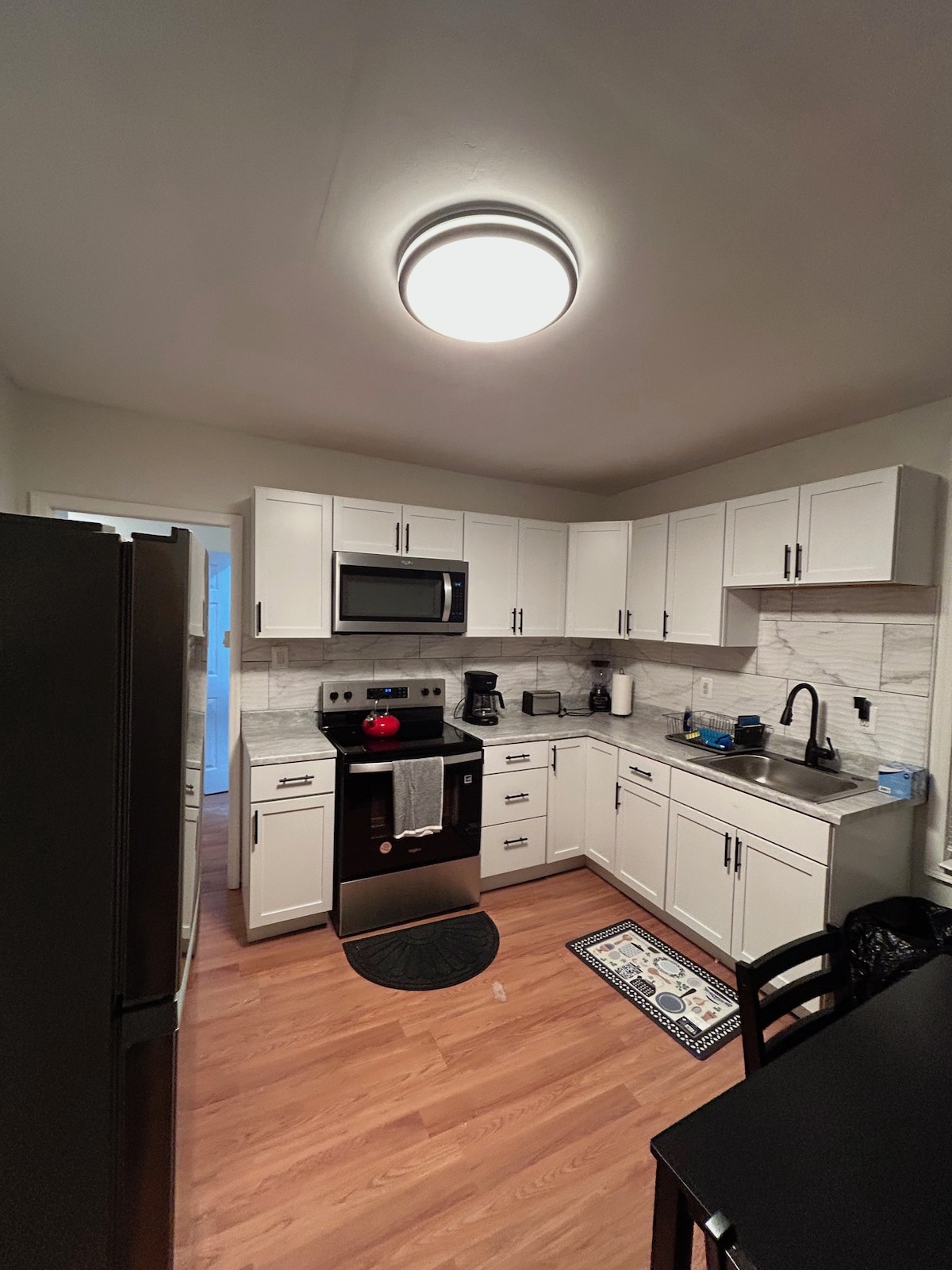 Sakit məhəllədə yenicə təmir edilmiş 2-ci mərtəbə mənzil. Mətbəxdə qranit döşəmələr, piştaxtalar və plitəli arxa plitələr var. Mətbəx ləvazimatları və döşəkağı-dəsmal dəstləri ilə təchiz olunub. Ərzaq mağazası, pivə distribyutoru, camaşırxana, CVS aptek və yerli restorana qədər məsafə. Gəzinti/qaçış üçün ictimaiyyətə açıq olan orta məktəb sahəsinin/trekinin yanında yerləşir. Mənzilə daxil olmaq üçün bir pilləkən uçuşu. Siqaret çəkmək/ev heyvanlarına icazə verilmir.