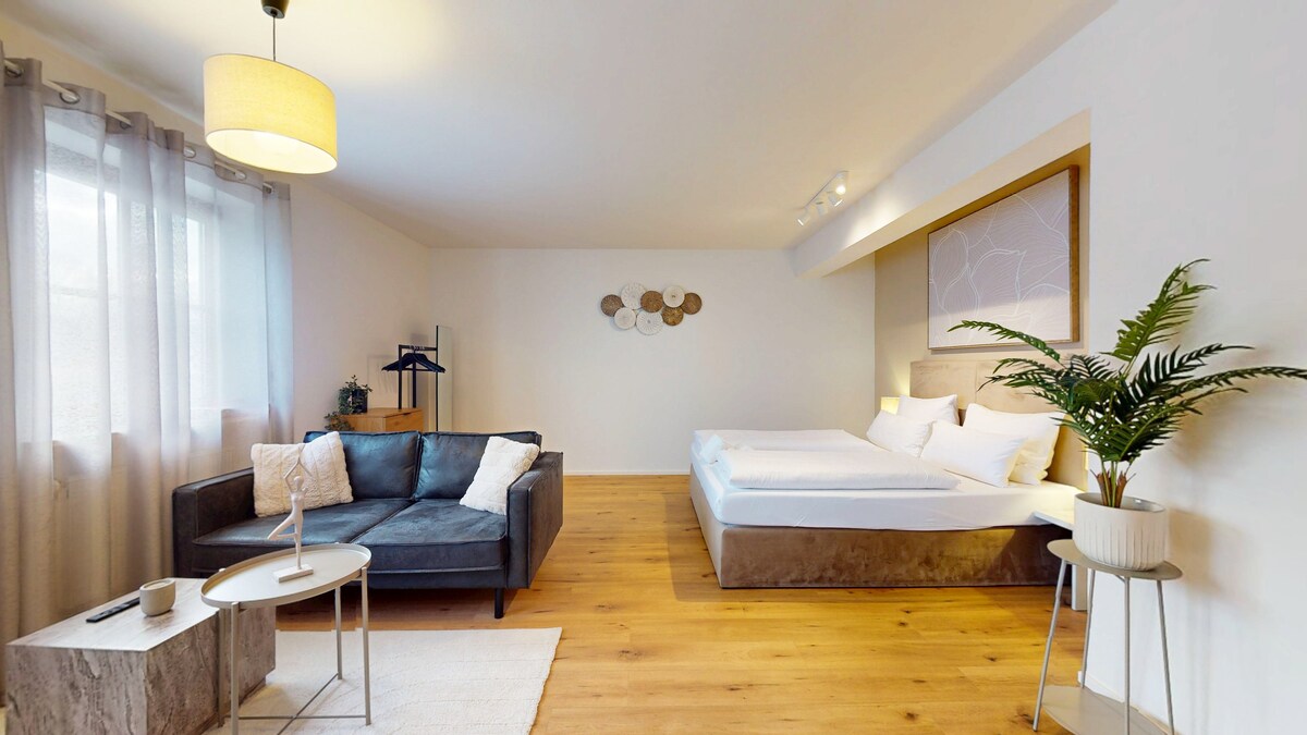 "İSTİRAHƏT MÜTLƏQDİR" Rahat tətil üçün mükəmməl Untermeitingendəki müasir studiya mənzilimizi kəşf edin. → Müasir və dəbli mebellə təchiz edilmiş studiya mənzili → Dəbdəbəli yataq dəsti olan çarpayı Yağış duşu və dəsmalları olan vanna → otağı Bütün kulinariya istəkləriniz üçün → mətbəx Nespresso maşınından → premium qəhvə → Ağıllı TV, yayım xidmətləri və yüksək sürətli Wi-Fi Ərazidə → pulsuz parkinq YUVA EVLƏRİNDƏ komfort və üslubdan zövq alın