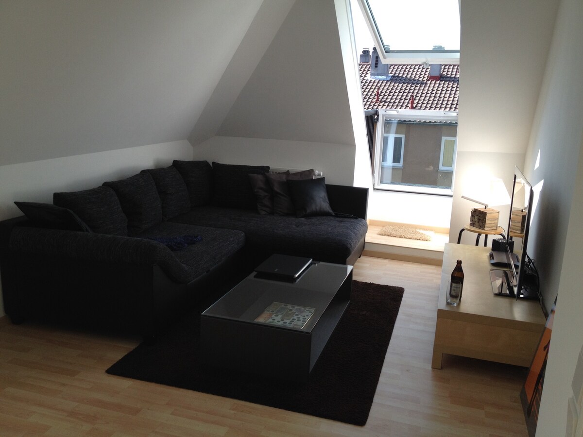 Parlaq və mərkəzi mənzil birbaşa Ringpark və Südbahnhof Würzburg arasında yerləşir. Maksimum 4 qonaq üçün nəzərdə tutulub. Yataq otağında 1,60 m enli çarpayı, qonaq otağında isə 1,60 m enli divan-çarpayı var. Mətbəx tam təchiz olunub. Geniş duş qabı ilə yanaşı, hamam otağında paltaryuyan maşın da var ki, bu da daha uzunmüddətli qonaqlamalara da imkan verir.