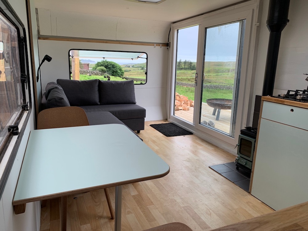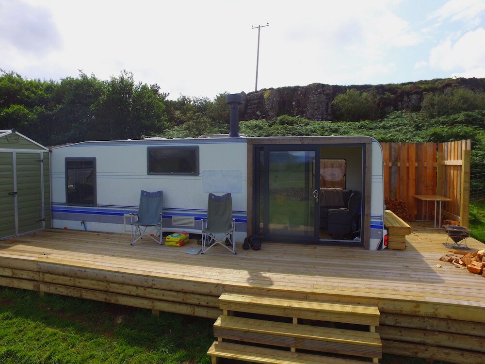 Bu, heç kimə bənzəməyən bir karvandır. Əl ilə qurulmuş interyer ilə Kroft Karvanı okeanın, möhtəşəm Burqun və Ben Morein heyrətamiz mənzərələri olan kroft sahəsində yerləşir. Məkan böyük ölçülü çarpayı və odun sobası ilə açıqdır. Bura köhnə məktəb istirahəti nəzərə alınmaqla hazırlanmış bir məkandır — internet və televizor yoxdur. Nəzərə alın: lisenziyalaşdırma məhdudiyyətlərinə görə karvan artıq İKİ şəxslə məhdudlaşır - bura uşaqlar və ya körpələr daxildir.