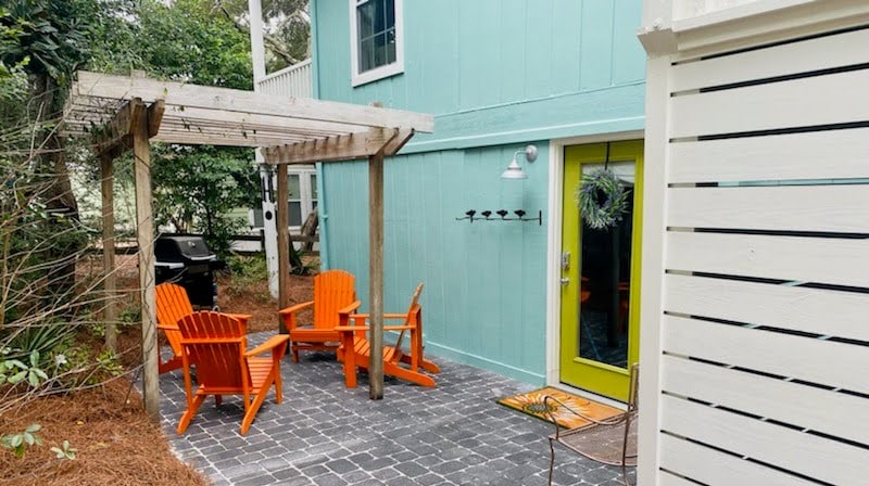 Enjoy an inspirational artist colorful beach cottage lined with palm trees. Walk to beach / Gulf of America. Located on the beach side of 30A at the end of a no drive through street. Marble floors w/ 10 ft. ceilings & original artwork. Rosemary Beach & Seaside 5 mins away for fabulous food and shopping. Rent bikes for a perfect day out. MAXIMUM 2 car parking. **Backyard studio is also rented with private entrance. Main cottage area has own door and is separate and private.