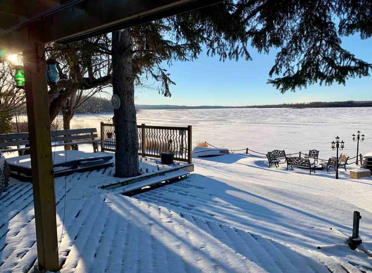 Göl adasındakı gözəl Lakefront gölümüzə qaçın və öz şəxsi çimərliyinizdən zövq alın! Bu kottec 5 Yataq otağında 16 nəfər yatır və geniş yaşayış sahəsi var. İl boyu fəaliyyətlərdən zövq alın! Qışda kanat, üzgüçülük, yürüyüş, dördnəfərlik, yanğınlar və xüsusi qızdırılmış buz balıqçı qandalınız! Tarixlərinizi tapa və ya çox böyük bir qrupa sahib ola bilməzsiniz - küçədə bacımızın evini nəzərdən keçirin! https://www.airbnb.com/h/lakeviewcottageatlakeisle