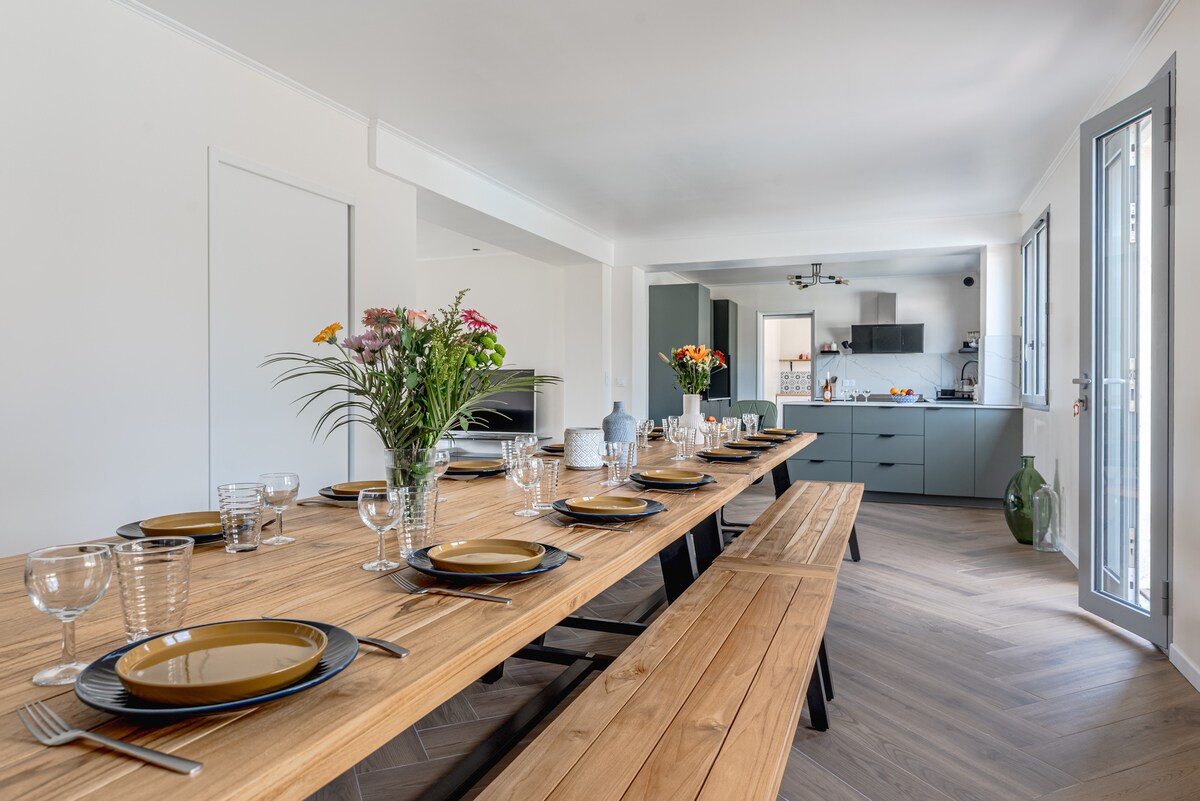 Bu rahat ev bütün ailə üçün rahat qonaqlama təklif edir. 160m2-lik parlaq ev 3 səviyyədə yayılıb: zirzəmidə vc və hamam otağı olan bir yataq otağı, hovuza maneəsiz mənzərəsi olan yataq otağı və birinci mərtəbədə böyük hamam otağı, yuxarı duş otağı olan iki yataq otağı. İki kiçik meşə arasında, çox sakit bir ərazidə yerləşən evin Şamlara 180° mənzərəsi var.