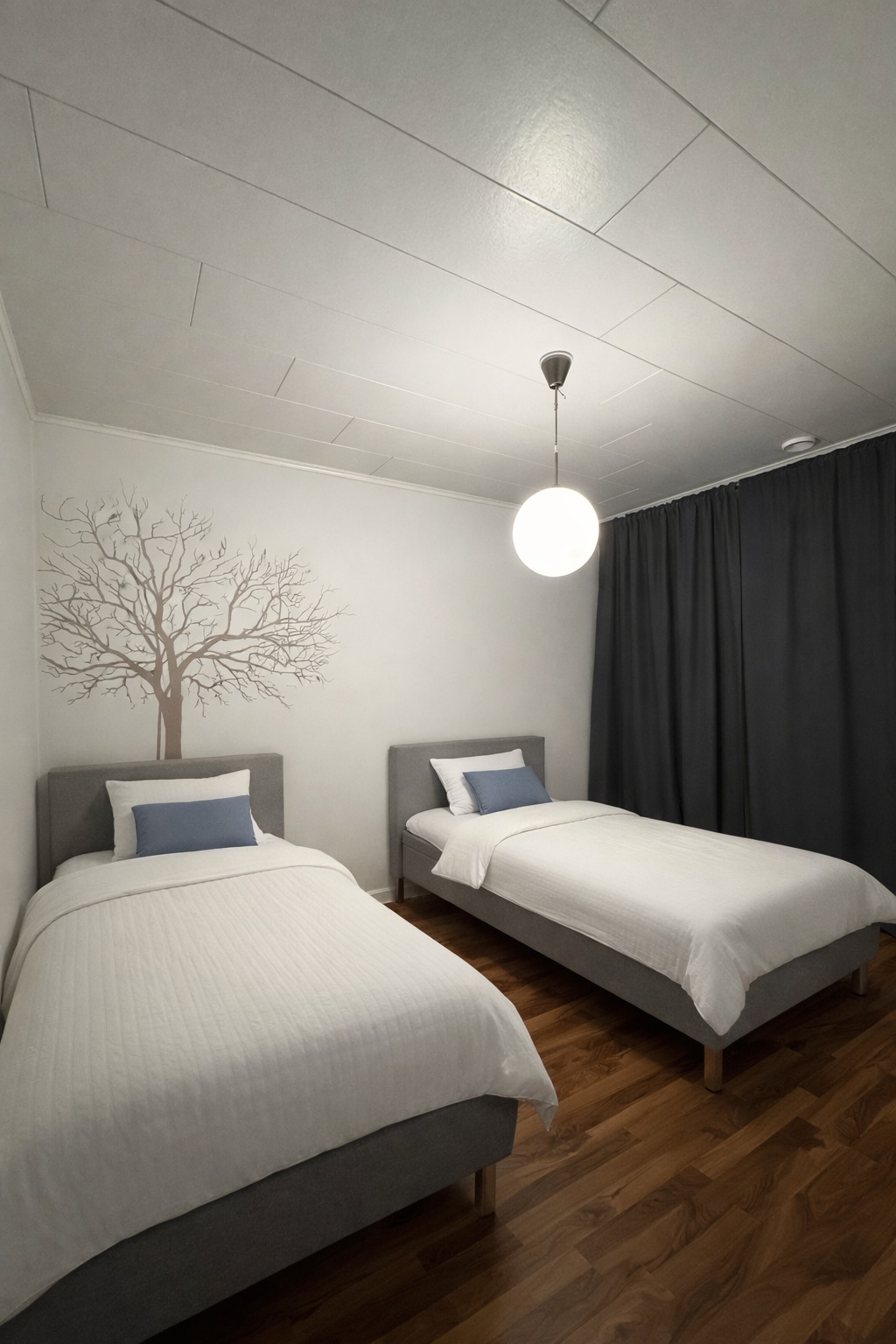 Seinäjoki mərkəzində, yay tədbirlərinin yaxınlığında yerləşən, lakin tamamilə təmir edilmiş, sakit, zövqlü iki otaqlı mənzil. Hər yerə qısa piyada məsafədə... * Mərkəzə 900 m * Arena 800 m * Öz SP stadionuna 1,6 km. * Dəmir yolu stansiyasına 1,2 km * Şəhər Teatrı 300 m * Ideapark 3,1 km. * Joupiska xizək mərkəzi 2 km Mənzildə yataq otağı, böyük ikinəfərlik çarpayı var. Əlavə çarpayı yalnız əvvəlcədən razılaşdırılmaqla. İki nəfər üçün lazım olan hər şey (+2) Mətbəxdə dörd nəfərlik oturacaqlar Qabyuyan maşın. Avtomobil üçün yer.