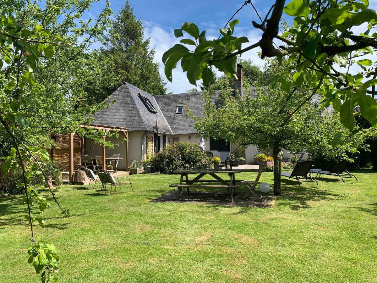 Vous profiterez d’une maison de campagne familiale, rénovée en 2020, sur une propriété de 2 hectares où séjournent quelques moutons & chevaux. Typique normande, la maison est très lumineuse & ouverte sur le jardin. Deux terrasses, dont une couverte, permettent de déjeuner dehors même les jours de météo incertaine. 🧺 Ménage, linge de lit, serviettes, torchons & bois de chauffage* : INCLUS Tous les lits seront faits à votre arrivée & la maison chauffée* (*en saison) Wi-Fi fibre haut débit.