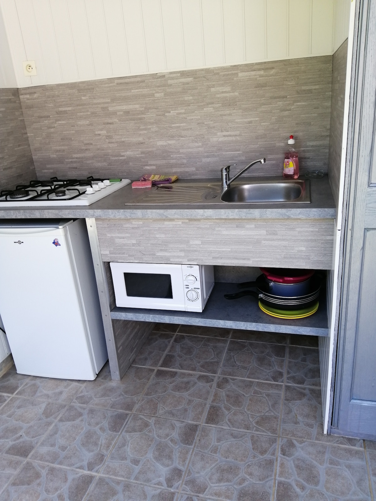 Təxminən bir hektar ərazidə yerləşən keçmiş malikanə evində sizi taxta terrası ilə əhatə olunmuş müasir üslubda alaçıqda qarşılayır. Evlərimizdən təcrid olunmuş, bütün il boyu və arakəsmədən 60 m2-dən çox geniş bir otaqdan zövq alırsınız. Buraya ikinəfərlik çarpayı, 1 2 nəfərlik konvertasiya divanı, divan, nəzakətli qabı olan istirahət zonası daxildir. Qışda iki radiator sizə istilik və rahatlıq gətirir.