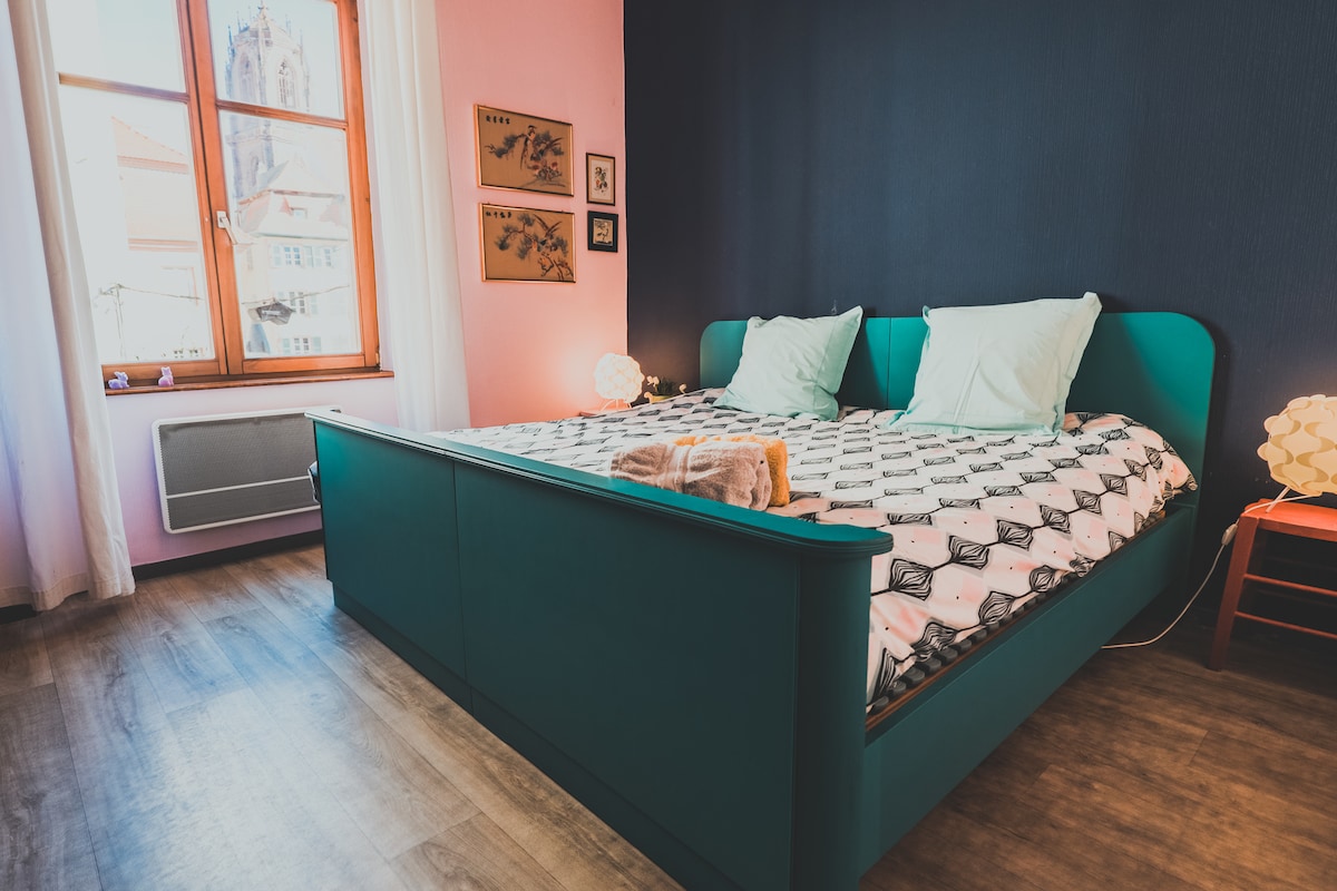 Gəlin və Elzasda (Kolmar və Strasburq arasında) Sélestatın mərkəzində tamamilə təmir edilmiş bu rahat dizaynlı mənzili kəşf edin. Onun imtiyazlı coğrafi mövqeyi Elzası və xüsusilə şərab marşrutunu, sikqolandı, meymunların dağını, Volerie des Aigles və Sélestat yaxınlığında yerləşən Haut-Koenigsbourg qəsrini, eyni zamanda kiçiklər üçün "Europa Park" və ya "gülməli dünya" nı ziyarət etməyinizə imkan verəcək.