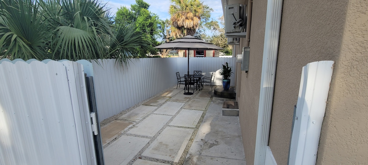 Enjoy the comfort of a private suite at a single-room rate ✨ This inviting space features a cozy queen bed, a full kitchen + dining area, a spacious living room, and your own private patio—perfect for relaxing after a fun day out 🌱 Located just 4 minutes from Busch Gardens & Adventure Island 🎢, 15 minutes from the Hard Rock Casino 🎰, and only 20 minutes from Downtown Tampa and the vibrant Ybor City Historic District 🌆. We look forward to hosting you ✨
