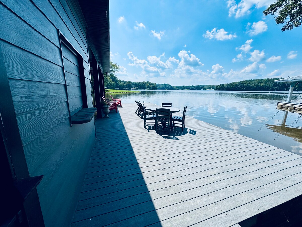 Get away from the stresses of life with this 3-Bedroom lakehouse with large boathouse. Sleeps 10 people in bedrooms and additional spaces on living room on couches. Breathtaking view of the lake and surrounding. Enjoy the water with included floating water mat or explore the area with our 2 kayaks and 2 paddle boards. Home features 3 bedrooms, 2 full baths, spacious full kitchen, washer/dryer, fire pit, 1,000MBs WIFI, YouTube LiveTV, gas grill , whole house standby generator and other amenities.