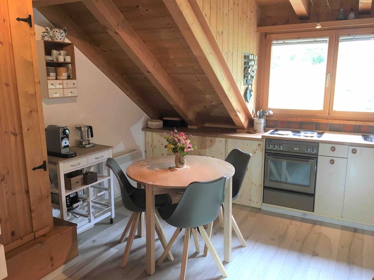 Otaqda masa, qəhvə, çaydan, mikrodalğalı soba, toster və soyuducusu olan mətbəx küncü (yemək bişirmə ləvazimatları olmadan) var. Kiçik səhər yeməyi üçün hər şey. Engadin Bad Scuol-a, açıq üzgüçülük hovuzuna, kabel avtomobilinə (yürüyüş/xizək kurortu), milli park bölgəsinə və Samnauna (gömrükdən azad) yaxınıq. Restoranlar/ticarət obyektləri piyada məsafədədir. Rahatlığa görə yerimizi bəyənəcəksiniz. Bu, qısa qonaqlama planlaşdıran tək səyahətçi, cütlüklər və macəraçılar üçün yaxşıdır.
