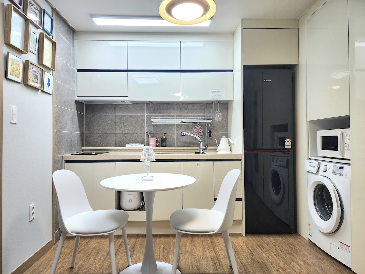 Hamdeok Cecunun şimal-şərqində ən isti yerdir. Cecunun 1 nömrəli gözəl Hamdok çimərliyi, 8 dəqiqəlik piyada məsafədə, çoxlu restoran, Starbucks, Delmon, Beskin, Lavins, Burger King, Lotte, Paris Baguette, Hanaro Mart, 24/7 mağaza, aptek, karaoke və bir çox digər imkanlar. (Qonaqlama yerinin içərisindəki bütün elektrik açarları, qapıçı, pult, quruducu və s. tamamilə dezinfeksiya edilir. Eyni gün üçün rezervasiya etmirəm və havalandırma nəmləndirməsini təmizləməyə diqqət yetirirəm. Qanunsuz kameranın qarşısının alınması detektoru yüz faiz təhlükəsizdir. Ən azı 2 gecə alacaqsınız.) 4 nəfər üçün əlavə ödəniş~ Qeyd: Qonaqlama məkanını qeydiyyatdan keçirərkən ünvan yanlış daxil edilibsə, Airbnb-də ünvanı dəyişmək üçün bütün qonaqlama məkanı yenidən qeydiyyatdan keçirilməlidir. Yenidən qeydiyyatdan keçərkən, qonaqlama yerimlə bağlı bütün dəyərli rəylər silindiyi üçün yenidən qeydiyyatdan keçə bilmirəm. Mövcud qeydiyyatdan keçirilmiş ünvandan fərqli olaraq, yaşayış yerinin faktiki ünvanı Hamdeok Çimərliyindən piyada 8 dəqiqəlik məsafədədir. Mövqedən narahat olan və bron etməkdən çəkinən qonaqlar. Narahat olmağınıza ehtiyac yoxdur. İstənilən vaxt sorğu alacağıq. Xoş arzularla,