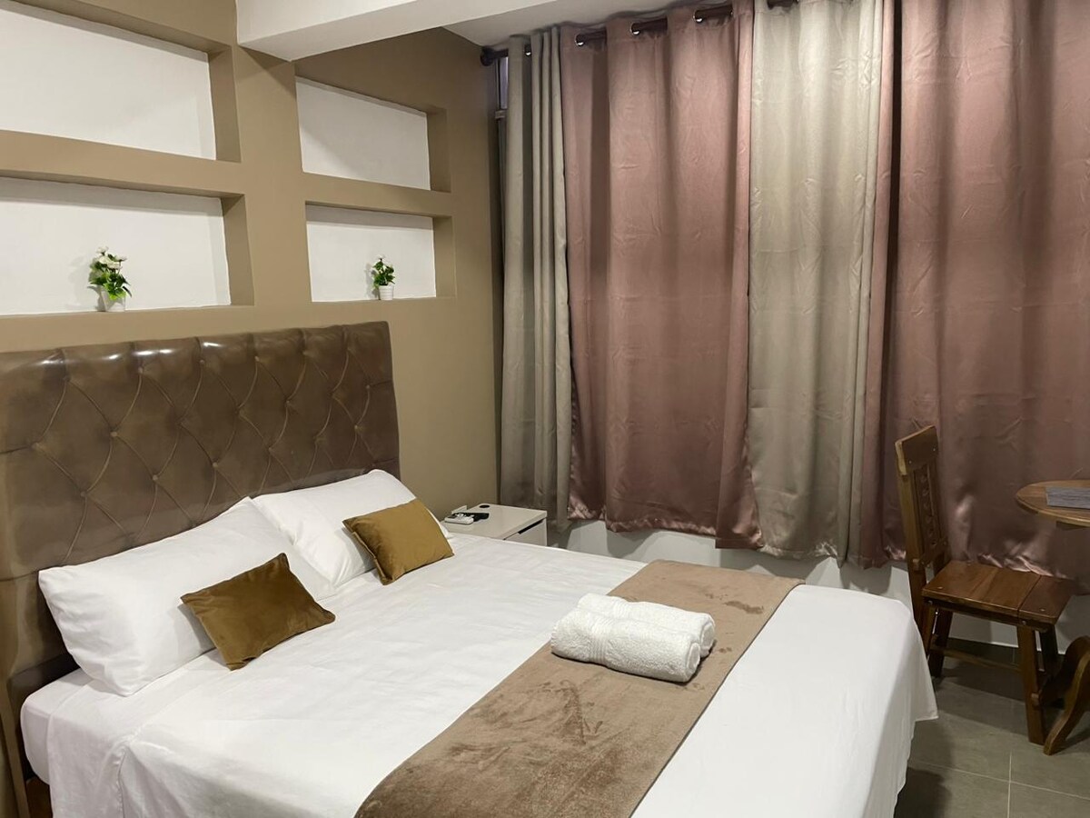 Əsas Plazanın addımları olan bu mənzil komfort və mövqeni birləşdirir. Katedral, marketlər, sənətkarlıq nümunələri, banklar, bankomatlar, restoranlar və mağazalar kimi əsas məqamlarla əhatə olunub. Məkanda kondisioner, təchiz olunmuş mətbəx, divan-çarpayı və Smart TV var. Bina damında hovuz, manqal, idman zalı və lifti olan barbekü sahəsi təklif edir. Santa Kruzun mərkəzində istirahət, praktiklik və yaxşı təcrübə axtaran turistlər və ya səyahətçilər üçün idealdır.