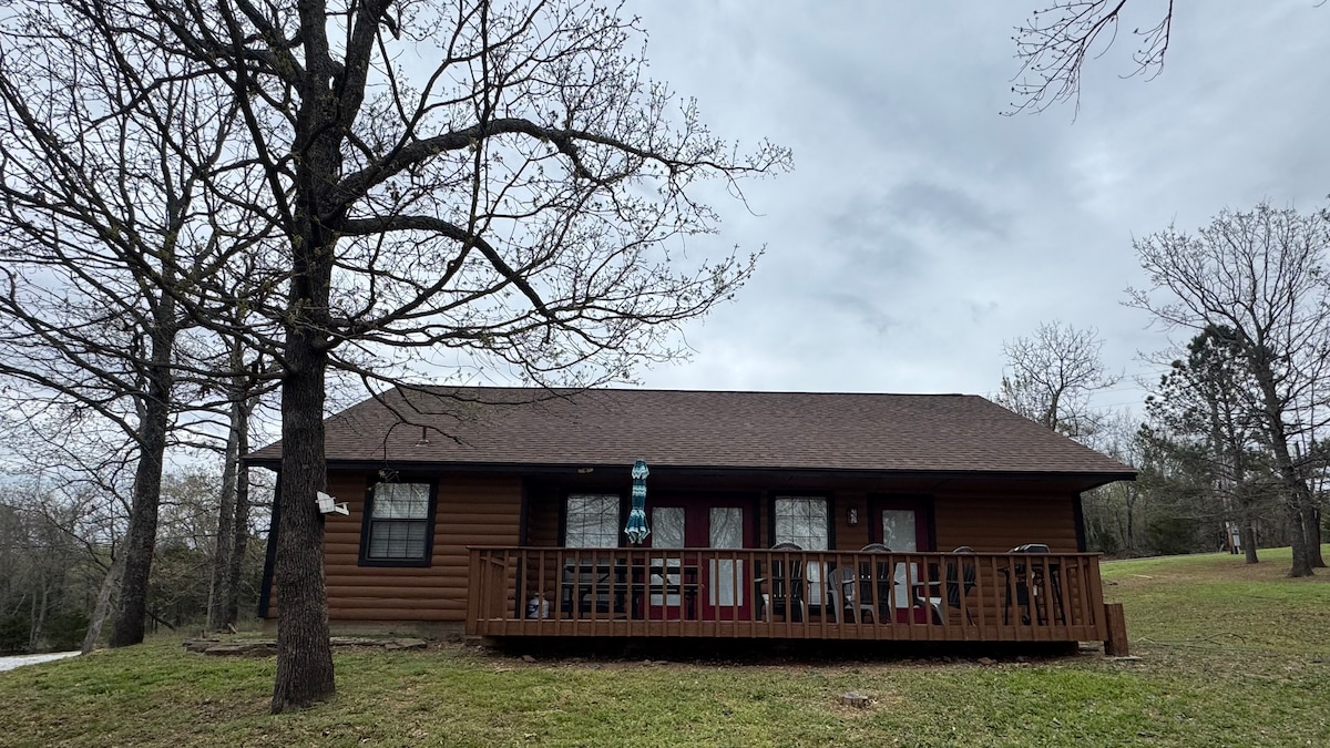 This beautiful newly renovated log home sits on Paradise Hill overlooking Lake Tenkiller. It is minutes away from the Fin and Feather Resort and Soda Steves Restaurant. The house also comes with a boat stall for guests to park their boat while they are staying. The boat stall is minutes from the house, an easy walk or drive. The home features 2 large decks for sitting and a covered outdoor kitchen with a fire stove for cooking. Guests can unload boats at Strayhorn Marina.