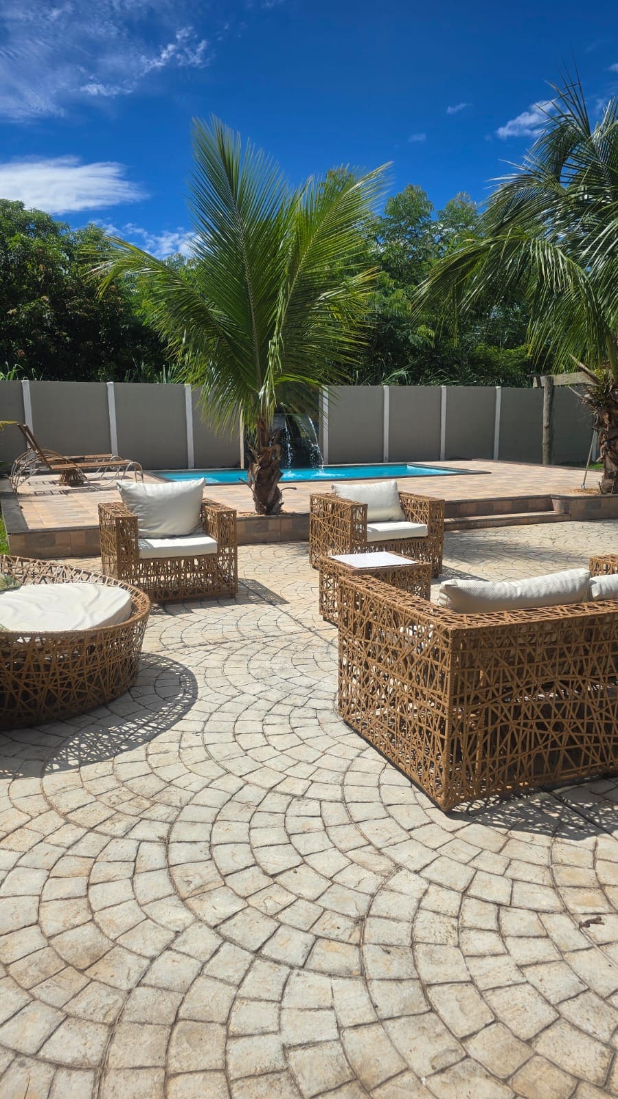 Chácara da Mineira-da 02 üzgüçülük hovuzu, 1-i günəş qızdırıcısı və LED işığı, digəri isə kaskad, sombrero ağacları, hovuz stulları, plastik stullar və masalar, barbekü, futbol və pinq hovuzu var.