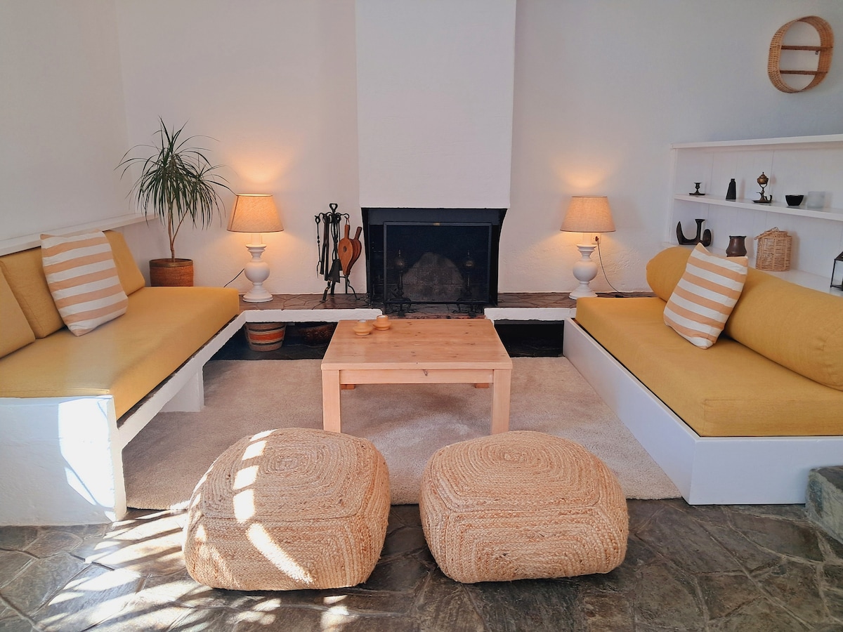 75m2 loft apartment with modern and unique architecture. Carefully designed, decorated with vintage-style furniture and art carefully selected over the years. This combination, along with a spectacular and impressive view over the bay of Cadaqués, makes it absolutely unique. It is located just 1 minute walk from Es Poal beach, about 45m away. PET friendly. We love animals. Please inquire privately about the extra cost per night for your adorable and furry friend.