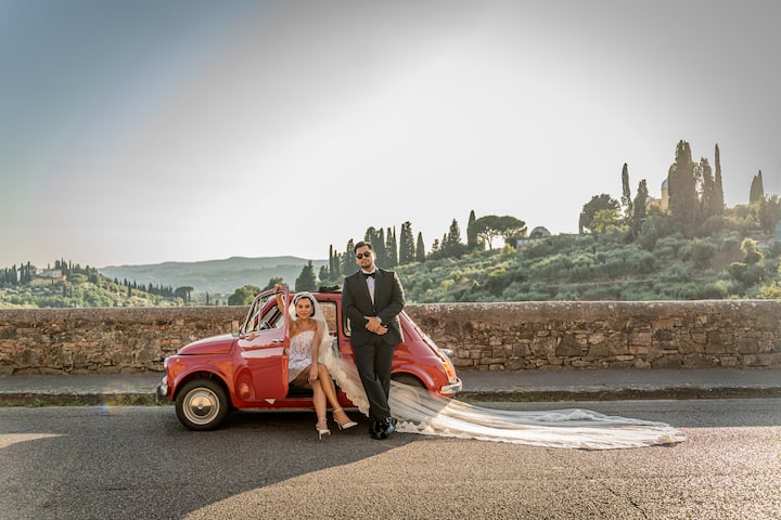 Hər bir dəyərli anı çəkə bilməyimiz üçün sizin məkanınıza gələrkən valehedici Fiat 500 avtomobilimizlə Toskanada toy gününüzün sehrini yaşayın. Bir unudulmaz gün üçün sizin xüsusi fotoqraflarınız olacağıq və həyatınızın ən önəmli gününün gözəl şəkildə çəkilməsini təmin edəcəyik. Gəlin sevgi və gözəlliyin iç-içə olduğu Toskananın valehedici mənzərəsi fonunda unudulmaz xatirələr yaratmağınıza kömək edək.