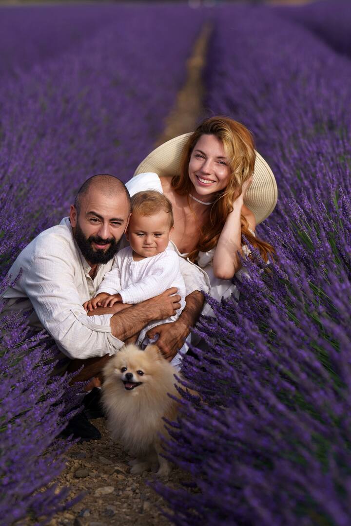 Rahat atmosferdə ailə və ya qrup sessiyası, lavanda tarlalarında bir neçə mövqe, daha çox poza və təbii hekayə danışma. Geyim təlimatı və vaxtla bağlı məsləhət daxildir.