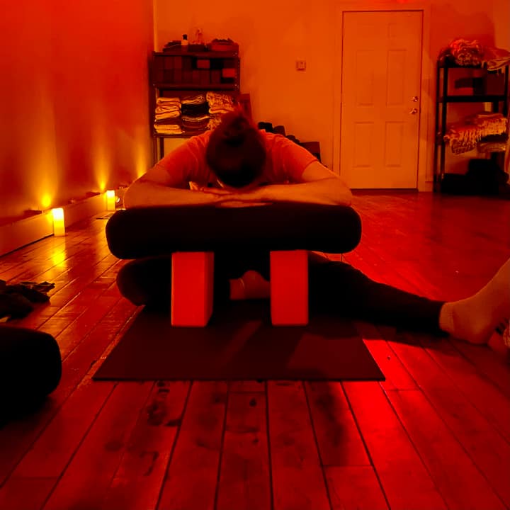 Yavaşlamağınıza, nəfəsinizlə əlaqə qurmağınıza və hazırkı anla barışmağınıza kömək edəcək fərdi meditasiya sessiyası. Bütün səviyyələr üçün uyğun olan bu sessiya bədəniniz və zehninizdə tarazlıq yaratmaq üçün sakit bir məkan yaradır. Hər bir sessiya oturaq meditasiya ilə başlayır və sonra rekvizitlərlə dəstəklənən bərpaedici yoga pozalarına keçir, bu da bədənin hələ də hazırda qalarkən dərindən rahatlamasına imkan verir.