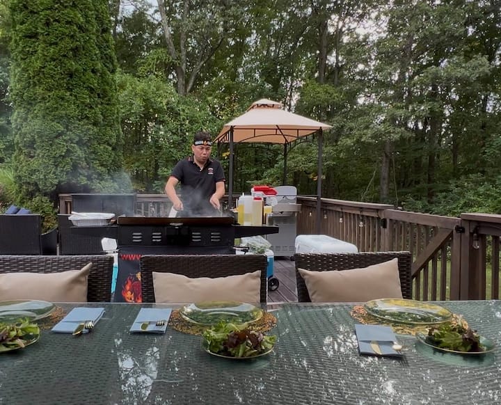 Biz evlər, arxa həyətyanlar və tətil icarələri üçün canlı teppanyaki şousunu təzə inqrediyentlərlə birləşdirərək mobil hibati keterinq və şəxsi hibati aşpaz təcrübələri təklif edirik
