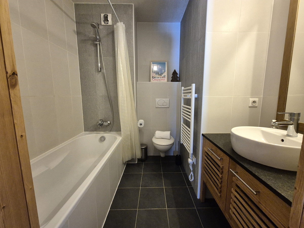 Last level of a high quality chalet, entirely renovated and a few steps from the center, you will appreciate the comfort of an individual apartment perfectly equipped while having access to quality hotel services (cleaning, breakfast). Its ideal location will allow you to enjoy a breathtaking view of the Mont Blanc chain, a beautiful sunshine all year round as well as a real proximity to the heart of Chamonix, its amenities and its transport.