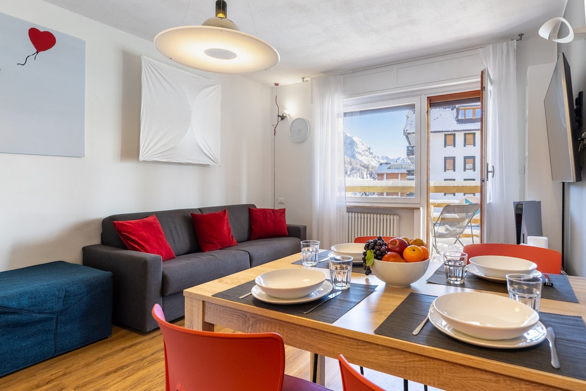 Strateji yerdə xizək yamaclarına panoramik mənzərəsi olan gözəl iki otaqlı mənzil. Yamaclardan və mərkəzdən cəmi 300 metr məsafədə yerləşir. Mənzil ikinəfərlik yataq otağı, hamam otağı, çoxmərtəbəli çarpayısı olan qonaq otağı və mətbəxlə təchiz olunub və hər iki otaqdan girişi olan geniş balkonu var. Örtülü parkinq yeri və xizək qutusu var. Lift də var. CIN IT001263C2BTLNO3TN