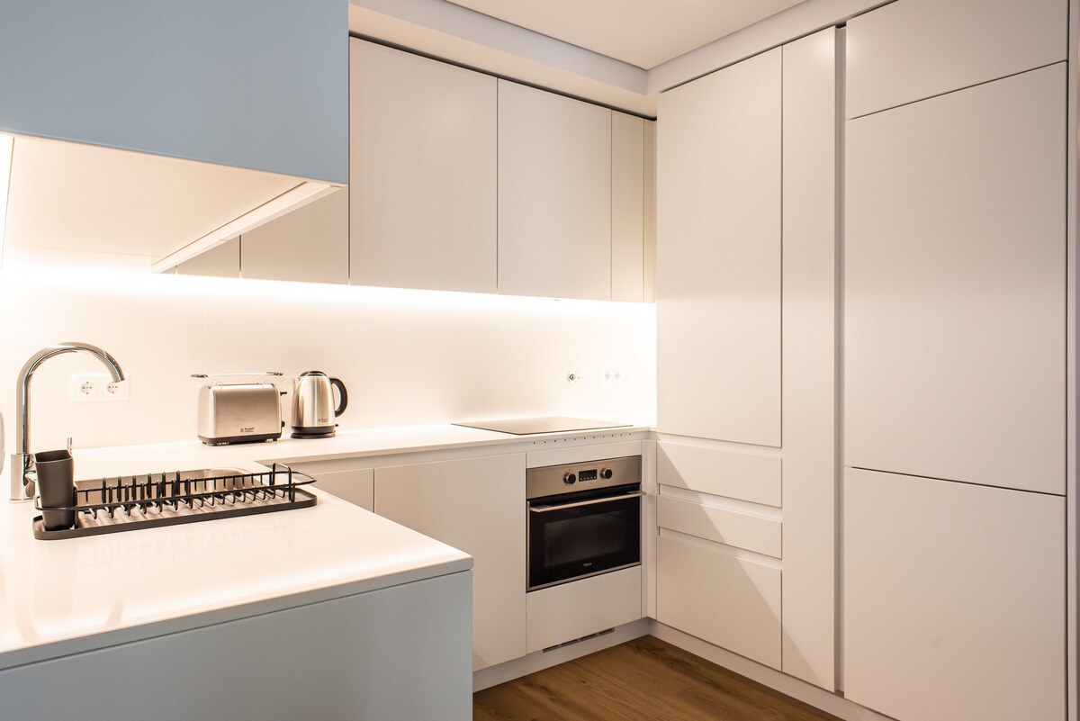 Lissabondakı dəbdəbəli istirahət məkanınıza xoş gəlmisiniz! - Rahat lüksü olan 50 kvadratmetrlik 1 otaqlı gözəl dizaynlı mənzil. - Rahatlaşdırıcı 150-179 sm ölçülü çarpayıdan və möhtəşəm vannadan zövq alın. - Dizayner divanı və ağıllı televizor ilə zövqlə bəzədilmiş yaşayış sahəsi. - Rahatlığınız üçün tam təchiz olunmuş müasir mətbəx. - Canlı Anjos rayonunda yerləşir, yerli qastronomiya və mədəniyyəti araşdırmaq üçün mükəmməldir. - Yaxınlıqdakı görməli yerlərə canlı kafelər və əyləncə seçimləri daxildir.