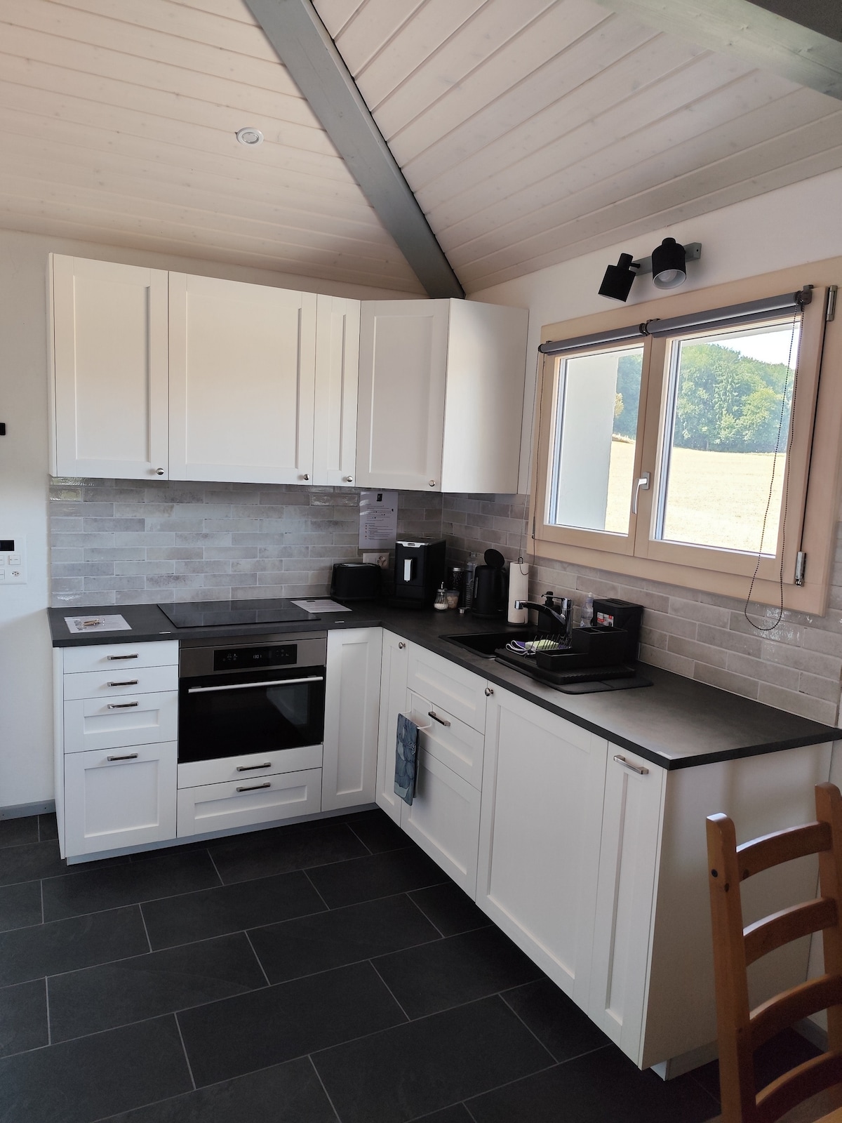 Bienvenue dans notre maison de 2013. Elle est moderne et bien équipée. Nous pouvons loger jusqu’à 8 personnes et vos bébés. Nous sommes dans un coin très calme dans une rue en cul de sac et a la fois très proche des commerces situés à Estavayer. Alors venez nous rendre visite