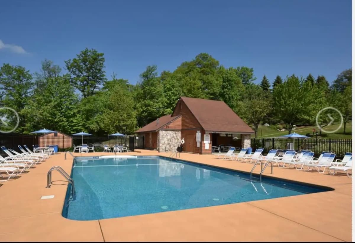 Yay Təklifi: 2+ gecə qonaqlayın, 1 gecə pulsuz əldə edin! Trailside Tətil Yeri Lorel Dağlıq Ərazisində, 7 Springs Kənd Cığırının düz üstündə yerləşən rahat, yenicə təmir edilmiş kondominiumumuzdur! Bu 2 yataq otaqlı, 2 vanna otaqlı tətil yerində 6 nəfər qala bilər və dağ mənzərəli arxa verandada ayrıca cakuzisi var. Cəmiyyət hovuzundan, cakuzidən, basketbol meydançasından və piklbol/tennis kortlarından çəkinmədən istifadə edə bilərsiniz.